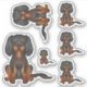 Destei's original cartoon illustration of a cute black and tan colour Cavalier King Charles Spaniel breed dog who is sitting. The design is placed six times on the sheet in different sizes.