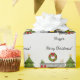 Destei's original cartoon illustration of a cute long hair black and tan coat colour Dachshund breed dog. The dog is placed in a festive room that has a fireplace and a lot of Christmas decorations including a green Christmas tree, some red stockings and a wreath with a red bow on it. There is also a personalizable text area that now reads: "Merry Christmas!" and another personalizable text area for a name.