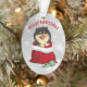 i am over the moon with this. it will hang on my christmas tree with pride. its my grandaughters first Christmas, and i know her parents will love it also , when they see it . the color is great , on both sides, the family is on other side . i will recommend to anyone . 10 outa 10 . thank you so much . delivery was quick also ( considering covid also post delay ) . price unbelieveable . i have had a few items from Zazzle never any complaints , customer service is awesome as well . excellent , no complaints at all