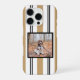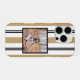 A chic black and tan striped iphone case featuring a custom dog photo framed in a modern design. Perfect for pet lovers wanting a personalised, stylish piece. This striped custom dog photo design adds charm and makes a thoughtful gift.
