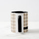Festive plaid tartan pattern, personalised holiday mug. Trendy black and tan tartan with template text line for name or initials.