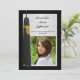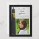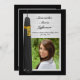 Dangling black graduation tassel along the left side, with a silver white striated background. Add a photo and details about the graduation party. All Designs Copyright © www.CustomInvitesOnline.com