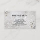 Energetically Enhanced Artsy Unique Creative Abstract business card. The colours are a Neutral Silver light Grey dark Grey Black and various shades of neutral Taupe. Faux Glitter in abstract shapes including a black glitter circle make up this captivating design. A faux Black glitter circle encloses the business and owner name on the front.