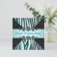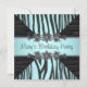 Black Teal Blue Zebra Womans Birthday Party Invitation