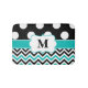 Show off your style in a fun way with this black and teal polka dots and chevron monogram bathmat.