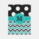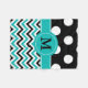 Show off your style in a fun way with this black and teal chevron and dots monogram blanket.