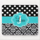 Show off your style in a fun way with this black and teal damask and dots personalised design.