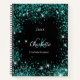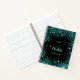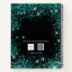Black background, white text. Decorated with teal, sea green faux glitter dust. Personalise and add a year, first name, monogram initials and full name.