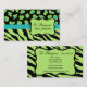 Black, Teal & Green Zebra & Cheetah Skin Custom Business Card