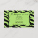Ceate a stylish business card for a great impression. Colourful stripe zebra skin and cheetah or leopard skin graphic design is one of the hottest art and design trends, and is extremely popular from fashion to home decor. This sophisticated black and lime green with turquoise teal zebra and cheetah print collection is designed for style. A lime green emblem creates a personalisation area on the front and for all your contact information on the back. This is fully customisable to personalise to include all your contact information for your buisness message or for a personal calling card.