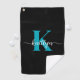 This simple, modern golf towel with your first name in a trendy script font in white and your first initial in a modern cap font in teal on black is perfect for you. It's stylish and trendy and yet very classic. It's unique - like you! Get a couple so you always have a clean one on hand.
