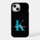This simple, elegant black iPhone 15 Case with your first name in a trendy script font in white and your first initial in a modern cap font in teal would look fabulous on your cell phone and will keep it protected from breakage. It's stylish and trendy and yet very classic.