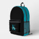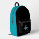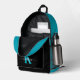 This simple, elegant black backpack with your first name in a trendy script font in white and your first initial in a modern cap font in teal is perfect for you.  It's stylish and trendy and yet very classic. It will be fabulous for school, the gym, outings, hikes, shopping, biking, etc.