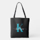 This simple, elegant black tote bag with your first name in a trendy script font in white and your first initial in a modern cap font in teal is perfect for carrying office work, school work, books, craft projects, anything at all. It's stylish and trendy and yet very classic.