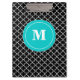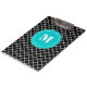 Show off your style in a fun way with this black and teal quatrefoil modern and trendy personalised clipboard.