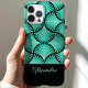 Black Teal Retro 1920s Gatsby Palms Script Name Case-Mate iPhone Case