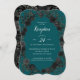Black Teal Rose Gothic Elegant Wedding Invitation