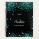 Black background, white text. Decorated with teal, sea green sparkles. Personalize and add your monogram initials, name and year.
