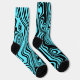 Custom Colours Personalised MIGNED Dsign Abstract Waves Black and Teal Blue Socks - or Choose / add your favourite background colours !