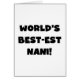 Black text World's Best-est Nani T-shirts, mugs, hoodies, cards, tote bags, magnets, keepsakes, and other world's best nani gear. Great gifts for great grandparents!
