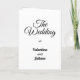 Present your wedding program sequence, participants and other details to your guests with this plain black text on a solid white background program on folded card, a simple design for couples or hosts who prefer plain text without any things in the background. Texts are centre aligned and combination of calligraphy and script fonts to enhance the style and sans serif font to enhance readability. The black text contrasting on the solid white background also enhances readability and clarity. This classic and timeless black and white colour can also complement various wedding colour themes or schemes. Customise it by typing the names of the bride and groom, venue of the wedding, date of the wedding, names of the participants, programs, short thank you message and other details. Please check the appearance of all sides after typing texts. If the appearance is pleasing to you, you can place your order now. If you need to resize and reposition the texts to fit in the templates of this card, please adjust in the design tool. You can also change the font style, font colour and background colour in the design tool. Congratulations on your engagement! Wishing you a lifetime filled with love and happiness.