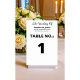 Guide your guests to their designated seats and enhance your table setting with this plain black texts on a solid white background table number card, a design for couples or hosts who prefer plain texts without any things in the background. Texts are centre aligned and combination of calligraphy and script fonts to enhance the style and sans serif font to enhance readability. The black text contrasting on the solid white background also enhances readability and clarity. This classic and timeless black and white colour can also complement various wedding colour themes or schemes. Customise it by typing the table number, names of the bride and groom, day, date and location of the wedding. Please check the appearance of the front and back sides after typing texts. If the appearance is pleasing to you, you can place your order now. If you need to resize and reposition the texts to fit on this table number card, please adjust in the design tool. You can also change the font style, font colour and background colour in the design tool. Congratulations on your engagement! Wishing you a lifetime filled with love and happiness.