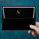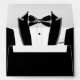 Elevate your bachelor party stationery with this custom envelope featuring a modern black and grey pinstripe with tuxedo design on the inside flap. Personalise with initials, and return addresses to match your unique wedding theme—perfect for groomsmen and special events.