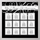 Elegant black and white seating chart for a party for between 85 and 120 people. Suits birthdays, weddings, anniversaries and other special events. We would be happy to help you to further customise this chart for the number of guests and tables at your wedding or formal party. The background colour and text colours are all customisable.