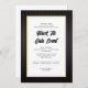 This Black Tie Gala dinner invitation features a stylish theme adorned with a black background and light grey vertical stripes. A white box with a gold border features custom text for you to add your event details. The design offers a sense of class and sophistication, setting the tone for a memorable event.