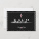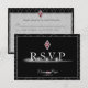 RSVP with diamond ruby emblem and love knot symbol highlighting couples name and date.