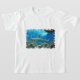 100% cotton so perfect for summer, It is a nicely designed t-shirt, the fabric is soft and the seams finished well, the body of the t shirt has no side seams. I bought a medium size for my two grandsons, aged 9 and 8 it will be slightly big on them but I would rather that than too small