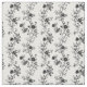 A refined black and white toile pattern featuring vertical arrangements of flowering branches with intricate blossoms and leaves, rendered in a detailed vintage engraving style.
