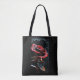"Black Tote Bag with Red Rose Design"