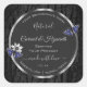 Make a lasting impression with this elegant and modern product label design featuring a black coloured natural tree bark and wood grain with a pretty silver frame and cute blue butterflies.