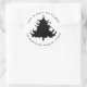 Black tree round stickers to use as a return address and envelope seal.  A Christmas pine tree, with swirling branches, is the design.  Stickers come in two sizes.  Text is curved around the top for name, or names.  Include the address in text that curves around the bottom.  Minimalist design in black and white with printed text.