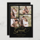 Black Trendy Collage 4 Photos Fancy Script Wedding Invitation Card with Envelope.