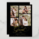 Black Trendy Collage 4 Photos Luxury Script Wedding Metallic Foil Invitation Card with Envelope.