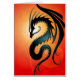 This black tribal dragon sits on a bright red and yellow background. The sun appears just behind the dragon’s head that is facing down in an elegant pose. The serpent’s body snakes up and then curves back down with it’s large black wings extending outwards. This stunning pattern makes a beautiful card.