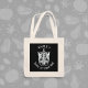 A typography-inspired design with a spooky bat silhouette. Script font along with block and fun typography. A simple black and white design with geometric lines and squares.