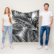 Black tropical palm leaves, white background fleece blanket