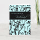 Bridesmaid invitation card in elegant turquoise with stylish black floral pattern. Also available in thank you cards and for the rest of bridal party.