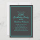 Honor a special milestone with this elegant 60th birthday party invitation, featuring a deep charcoal background paired with vibrant aqua typography for a striking yet timeless look. A sleek double-line border frames the design, while flowing script lettering combined with clean serif text creates a refined balance of elegance and modern style. Perfect for celebrating a woman’s 60th birthday, this invitation is ideal for evening gatherings, cocktail parties, or sophisticated home celebrations. The high-contrast color palette ensures excellent readability while beautifully showcasing the honoree’s name, event details, and RSVP information.