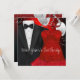Elegant tuxedo and red dress black tie party invitation template. This beautiful formal black tuxedo, red dress, champagne, confetti and balloons black tie party invitation is easily customised for your event by simply choosing the "Customise it!" button to begin adding your event details, font style, font size & colour, and wording. Please note - all of the card and invitation designs you will find on Zazzle are printed graphics with no actual jewels, bows, raised, embossed, or added parts or pieces.