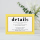 Elegant black typography and yellow border wedding details Enclosure Card. This insert card includes your text in a frame with a yellow border. The word "details" is in bold style typography. It is part of our "Vintage yellow jasmine flowers" collection with mix and match paper products.