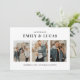 Black Typography Three Photo Collage Save The Date Card | Announce your wedding date with this modern save the date flat card. It features simple typography and three photo collage. This photo save the date is a perfect way to showcase your favourite engagement photos. Perfect for any wedding theme.
