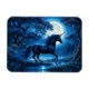 Beautiful Black Unicorn walking in a stream at night under a full moon