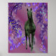 Black Unicorn Flowers Fantasy Horse Art Poster