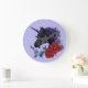 Black Unicorn Flowers Purple Large Clock