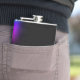 The flask itself is fine. It’s a cheap flask, obviously bought in bulk, however am prepared to overlook that. Given that it is a personalized item, I would have liked to have seen gift boxing instead of the generic packaging. Terrible printing, and/or quality. It’s a cheap, tacky vinyl. It is not cut straight and is also applied in a way that it is overhanging the bottom, causing the glue to catch on items and it will eventually roll and tear, damaging the wrap.