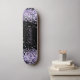 A black background. Personalise and add your name. Decorated with violet, lavender coloured faux glitter dust. The name is written with a modern hand lettered style script.